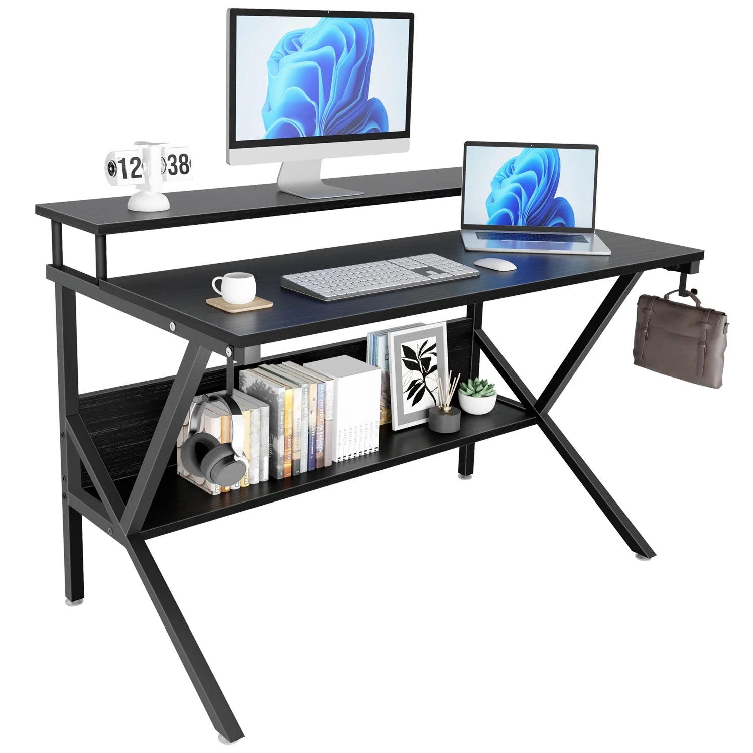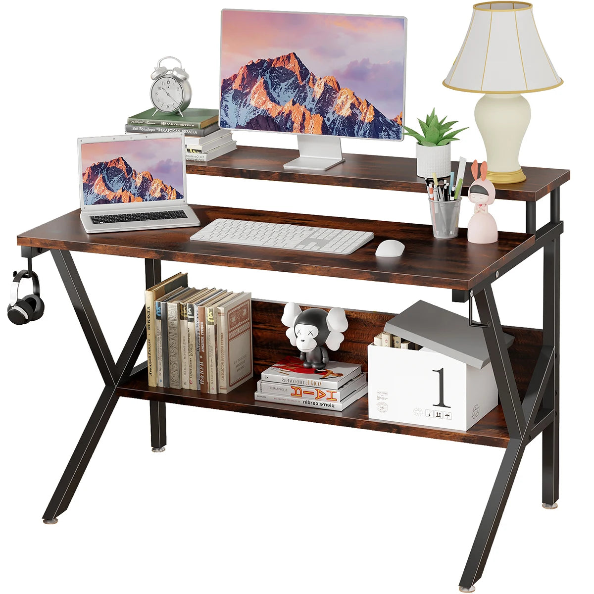 Escritorio multipropósito: Amplia superficie que te brinda espacio para escribir, trabajar, jugar en computadora y realizar otras actividades en casa. Usa la repisa inferior para tener libros, CPU y archivos al alcance de la mano. Sus tres niveles de espacio de almacenamiento son perfectos para decorar tu recámara, sala, estudio u oficina. Es un escritorio multipropósito para el hogar y la oficina, y será el regalo más cálido que puedes elegir para tu familia.