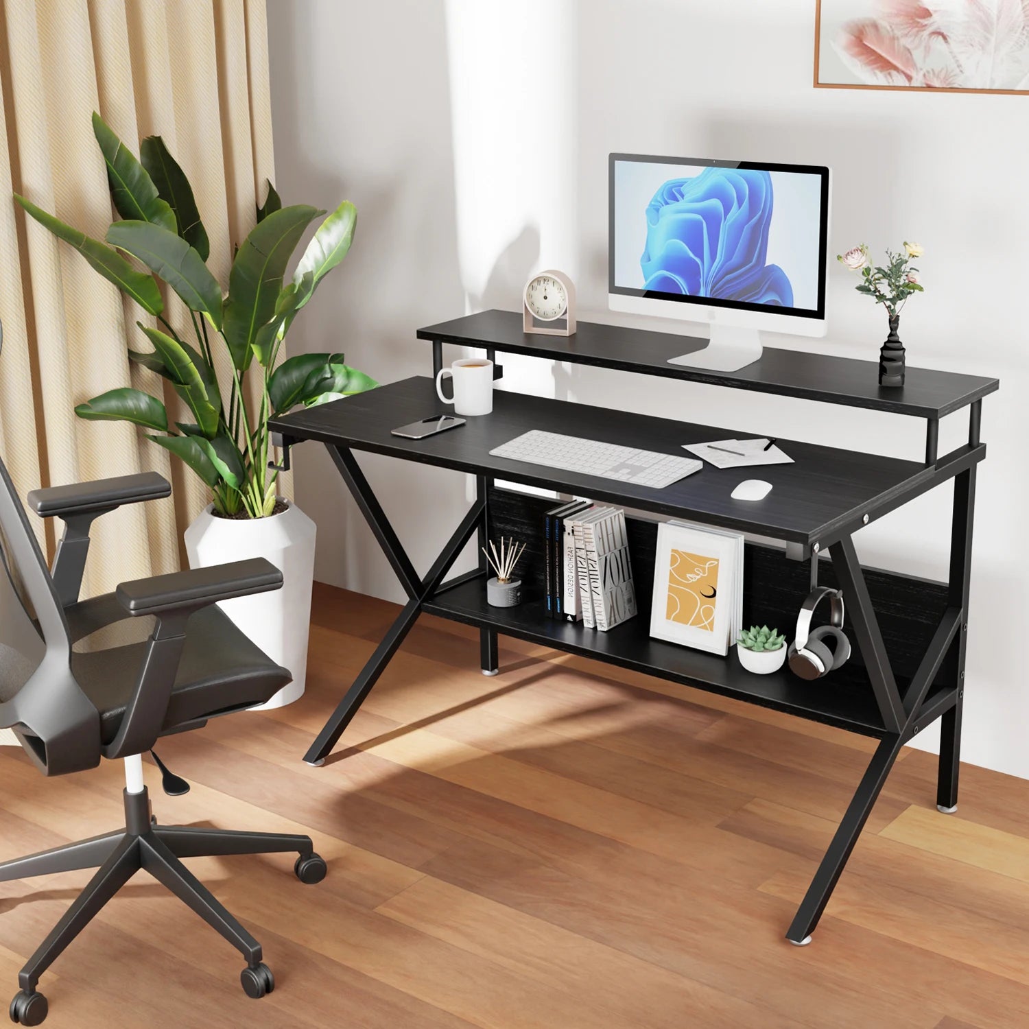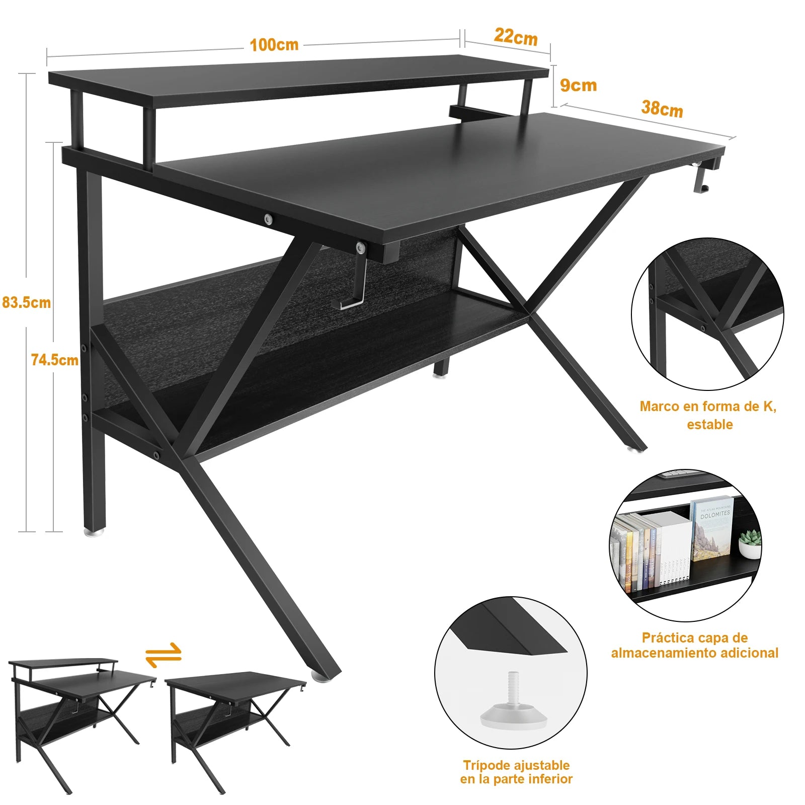 Diseño estable con estructura en forma de K: El escritorio con forma de K está equipado con dos ganchos metálicos a los lados del tablero. Ya sea para colgar la mochila o los audífonos, se pueden colocar fácilmente. Las patas en forma de K hacen referencia a la alta estabilidad del triángulo. No tendrás que preocuparte por una mesa inestable.